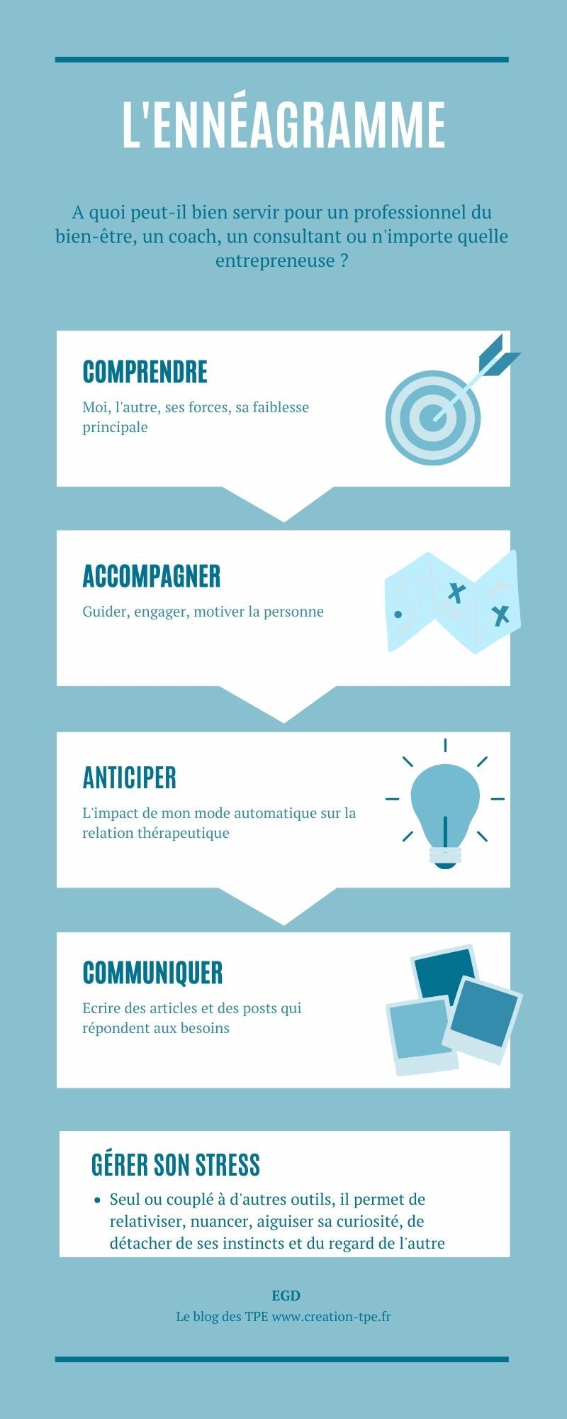 On évoque de nombreux outils qui vont aider les entrepreneuses à réussir, et ceci avec raison. On citera le plus souvent des outils numériques, des outils de gestion. Il existe d'autres outils, dits de développement personnel, qui permettent à une porteuse de projet de se faciliter la vie. L'ennéagramme en fait partie. Mieux se connaître, comprendre les autres favorisera une meilleure résilience, simplifiera vos démarches commerciales et stimulera votre bienveillance face à la rigidité administrative.